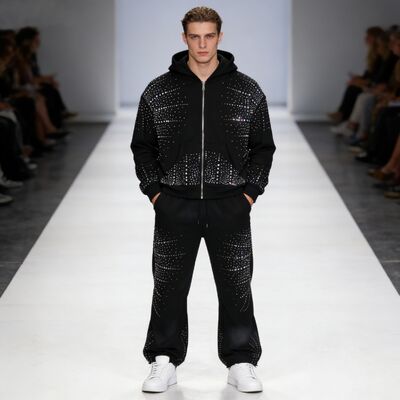 Σετ Φούτερ με Φερμουάρ και Παντελόνι για Άνδρες Designer με Στρας Streetwear, Βαμβακερό Σετ Φόρμας Υψηλής Ποιότητας για Άνδρες 1