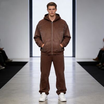 Σετ Φούτερ με Φερμουάρ και Παντελόνι για Άνδρες Designer με Στρας Streetwear, Βαμβακερό Σετ Φόρμας Υψηλής Ποιότητας για Άνδρες 5