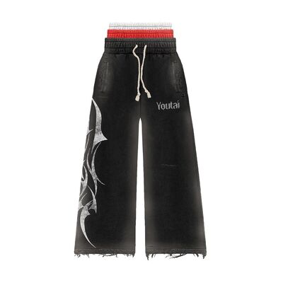 Streetwear Σετ Φούτερ και Παντελόνι Φαρδιάς Γραμμής με Τριπλή Επίστρωση και Ξέβαμμα Οξέος, Βαριάς Ποιότητας, Oversized, Κοντό, Τυπωμένο, με Τρουκς