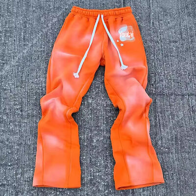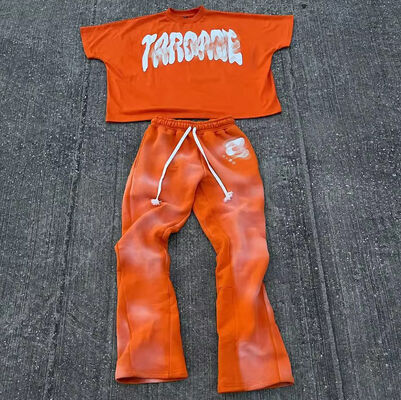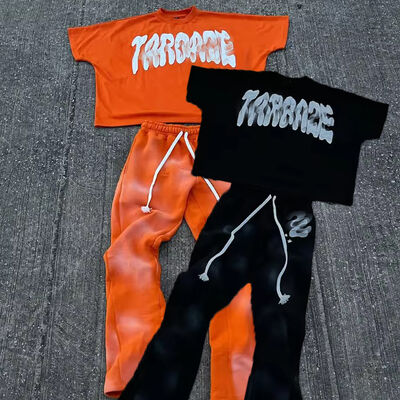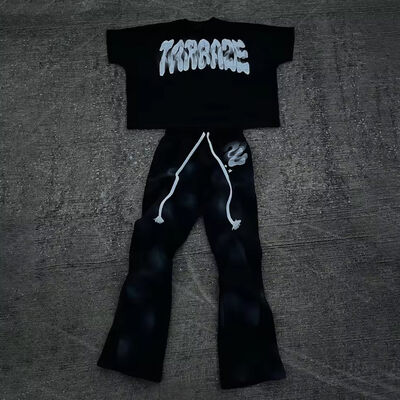 Κατασκευαστής Προσαρμοσμένο πλύσιμο με οξύ Sweatsuit Jogger βραχυφόρα Κούτσουρα Κούτσουρα Κουτί Τύπωση Ήλιος Λάμψει T-Shirt Και Flared παντελόνι για άνδρες