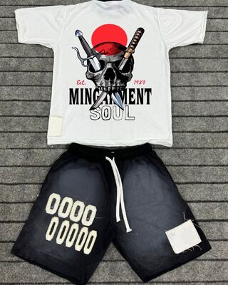 Χονδρική Προσαρμοσμένο 100% Βαμβακερό T-Shirt με Κέντημα και Σετ Σορτς για Άνδρες Vintage Acid Wash Cropped Ανδρικό Σετ Σορτς Φούτερ
