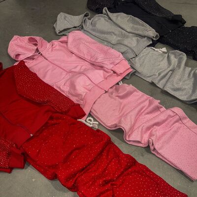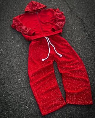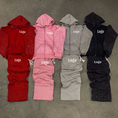2025 Τρέντινγκ Heavyweight All Print Rhinestone Sweatsuit Custom Streetwear Trackusit Acid Wash Flared Sweatpants και Hoodie Sets