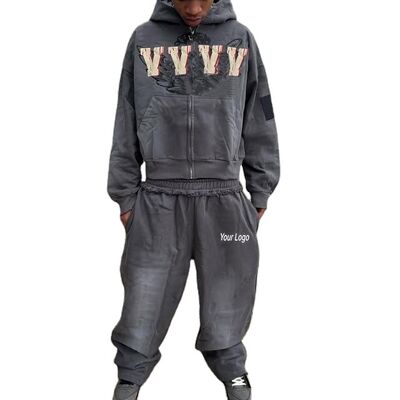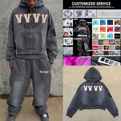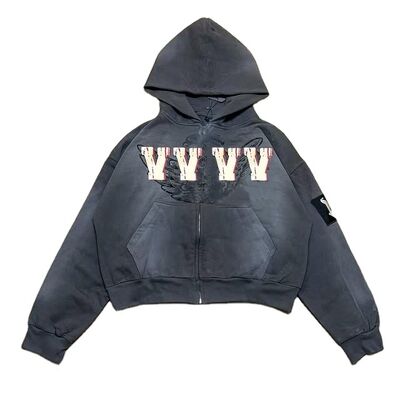 2025 Hot Sale Custom Vintage Acid Wash Printed Sudaderas Hombre Φούτερ Cropped Cotton Streetwear Φόρμα