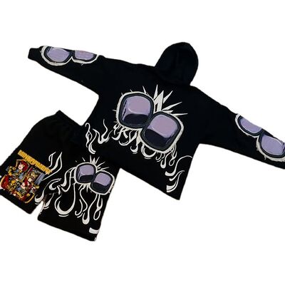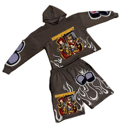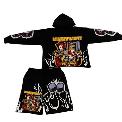 Προσαρμοσμένο βαρύ βάρος εκτυπωμένα ρούχα δρόμου πλύσιμο οξέος Hoody ανδρών Sweatsuit υψηλής ποιότητας μαύρο Baggy Hoodie και σορτς σετ για άνδρες