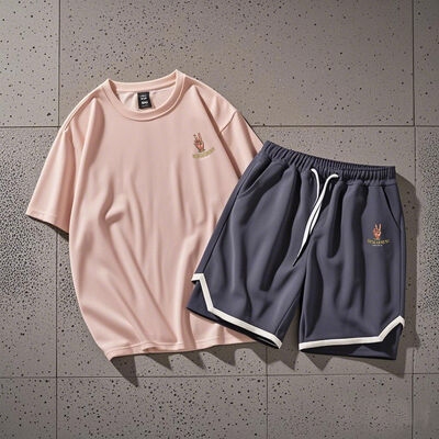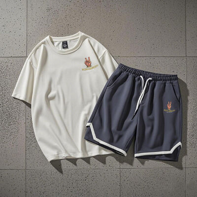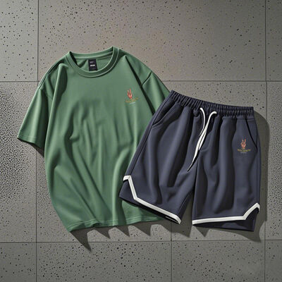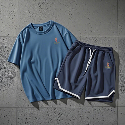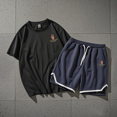 Προσαρμοσμένο Σετ Καθημερινό T-Shirt με Στρογγυλή Λαιμόκοψη από 100% Βαμβάκι για Καλοκαίρι και Σορτς Χονδρικής Ψηφιακής Εκτύπωσης Λογότυπου Σετ Σορτς για Τρέξιμο για Άνδρες