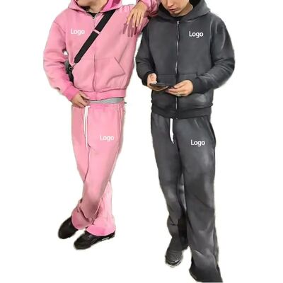 Προσαρμοσμένο ηλιοθεραπεία Βιντέζ τρέξιμο βαρέος βάρος φουσκωμένα παντελόνια και κουστούμια άνδρες ρούχα δρόμου οξύ πλύση δύο κομμάτια Sweatsuit