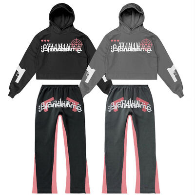 Στριτγουόερ βαρέος βάρος ανδρών στοιβαγμένα παντελόνια φόρεμα Custom Logo Plus Size ανδρών πουλόβερ Hoodie και Flare παντελόνια φόρεμα