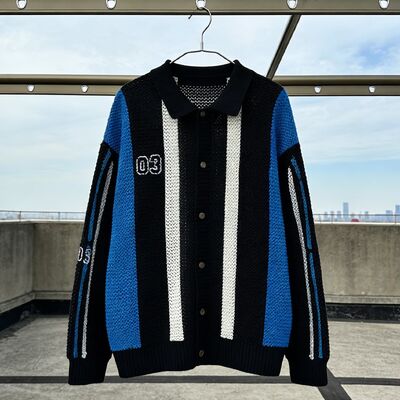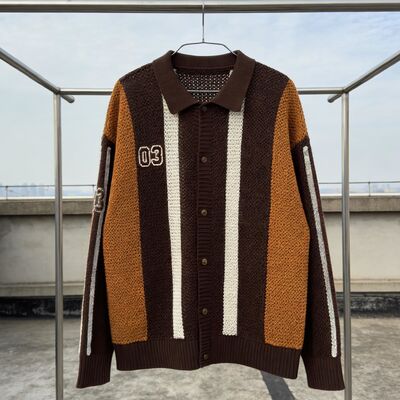 Προσαρμοσμένο πλεκτό πουλόβερ με ένα κουμπί μπλε καφέ κούφιο μακρύ μανίκι Jacquard μόδα ρούχα δρόμου άνοιξη χειμώνα top για άνδρες