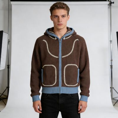 Σχεδιασμός προσαρμοσμένου λογότυπου, πλεκτό μακρυμάνικο τζάκετ με φερμουάρ, μοντέρνο παλτό πλεκτών υψηλής ποιότητας, μπλουζάκι με πλεκτό κροσέ, υπερμεγέθες ανδρικό πουλόβερ