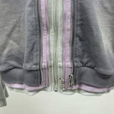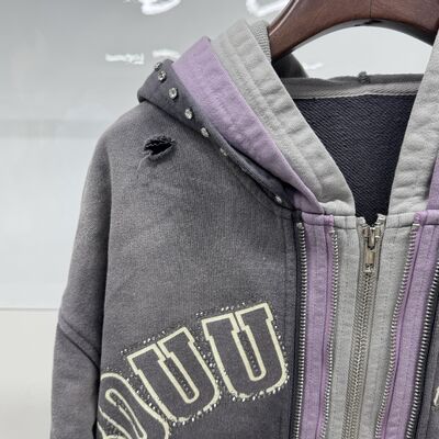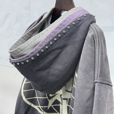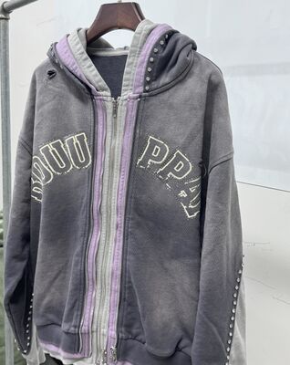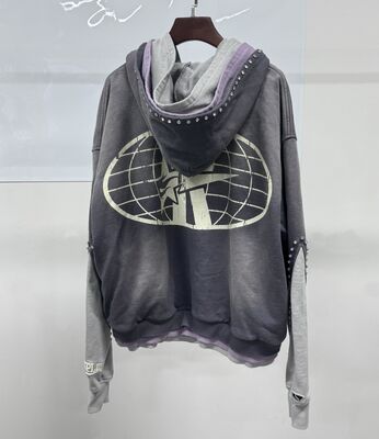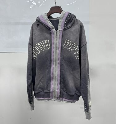 Portagem em Grosso Custom Distressed Rhinestone Triple Layer Hoodie Homens Streetwear Oversized Cortado Zip Up Acid Wash Heavyweight Hoodie