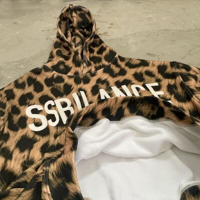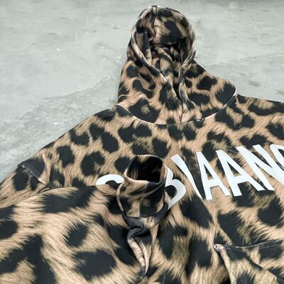 Moletom com capuz de algodão French Terry pesado oversized personalizado para homem, fabricação streetwear, estampa completa de leopardo e camuflagem, Sudaderas Hombre