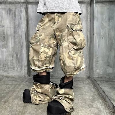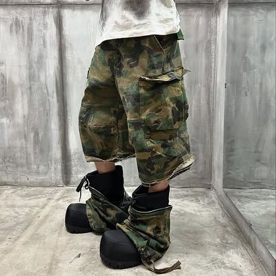 Nome do produto | Grátis Impressões de Camuflagem Personalizadas Baggy Denim Jeans Homme Streetwear Zip Convertible Shorts Camo Cargo Calças de suor para homens |