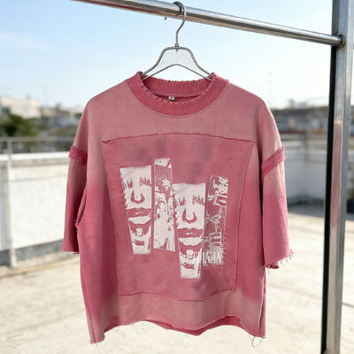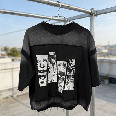 Shorts de manga curta oversized cropped com estampa acid wash e efeito distressed, estilo streetwear hip hop, fabricado sob medida 0