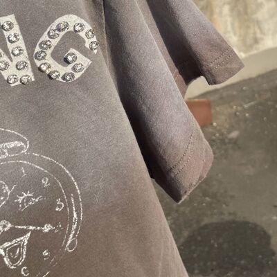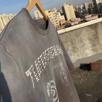 Fabricante Custom de alta qualidade Rhinestone Vintage T-shirt de verão cortado em caixa Shorts Manga de algodão T-shirt de lavagem de ácido T-shirt masculino