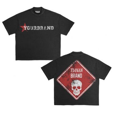 Camiseta Oversized Lavada Ácida para Homens de Fabricantes OEM com Estampa Personalizada, Camiseta Vintage de Algodão Pesado, Camiseta Gráfica Oversized