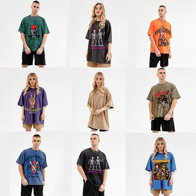 T-shirt impresso por encomenda para homens de algodão simples de tamanho grande lavagem ácida T-shirt em branco de verão