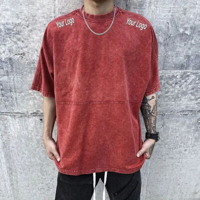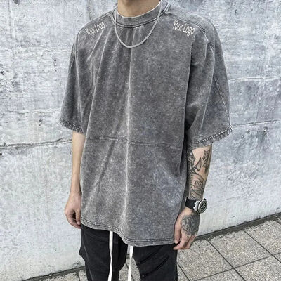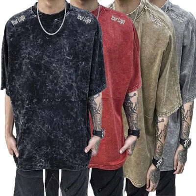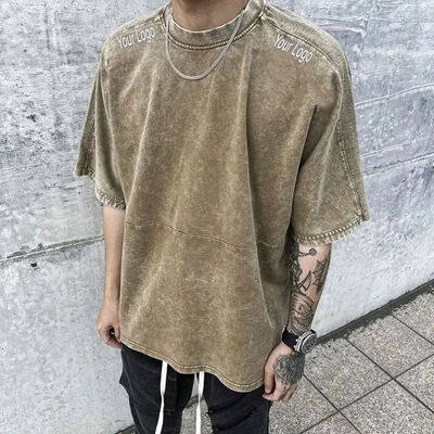 Logotipo personalizado desbotado plus size camisetas masculinas atacado de alta qualidade impresso lavagem ácida vintage moda t camisa para homem