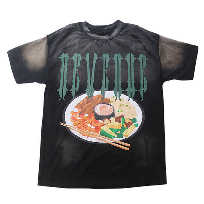 T-Shirt masculino de lavagem por ácido personalizado T-Shirt de design impresso Vintage de alta qualidade Collar de algodão Hip Hop Plus Size T-Shirt de moda para homens