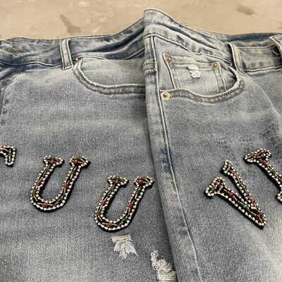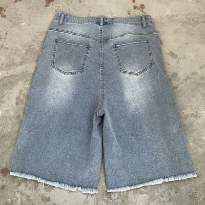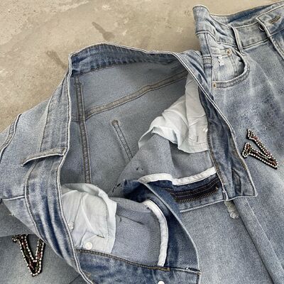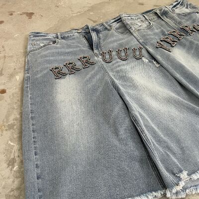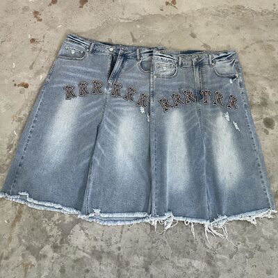 Fabricante Streetwear Acid Washed Rhinestone Baggy Running Shorts Men Custom Hems Jorts Denim Jeans Knee Cargo
