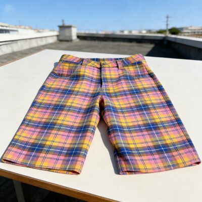 Design Xadrez Colorido: Adiciona vivacidade e estilo ao seu look casual de verão.