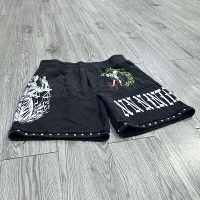 Shorts Fabricante Streetwear Acid Wash Impresso Rhinestone Distressed Algodão Cortado Correndo Sweat Baggy Sports Shorts para Homens