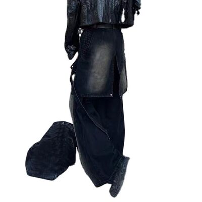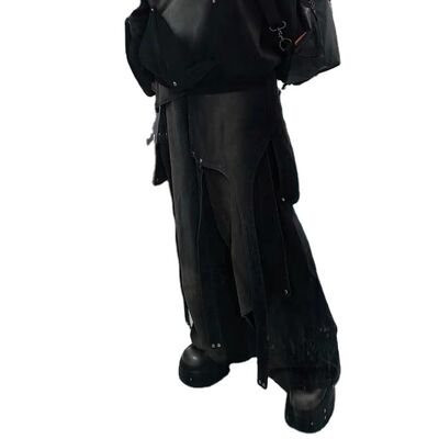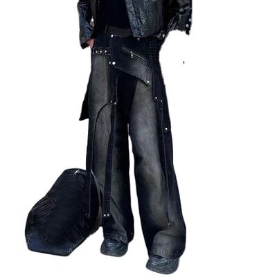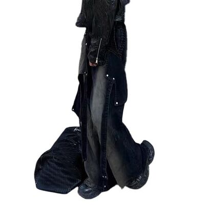 Custom High Quality Vintage Acid Wash Jeans de pernas largas jeans de denim calças de transpiração para homens colagem preta jeans de carga removíveis