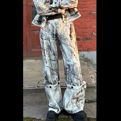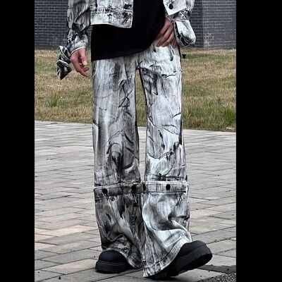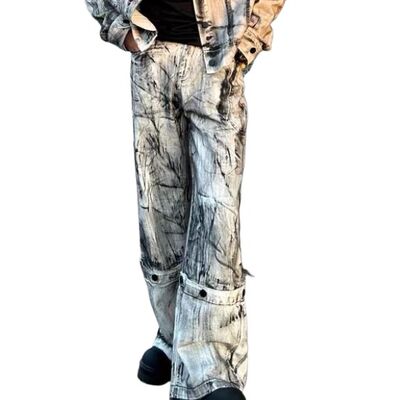 Jeans Jogger de Sarja Estampados Y2k Customizados para Venda por Atacado, Jeans Vintage de Alta Qualidade com Lavagem Ácida para Homens