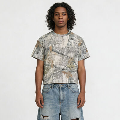 Camiseta Masculina Camuflada de Verão Personalizada, Atacado, Manga Curta, Estampa Digital, Algodão Penteado Macio, Corte Reto