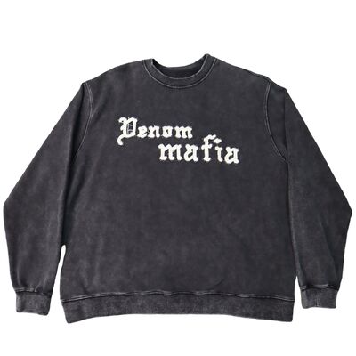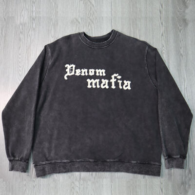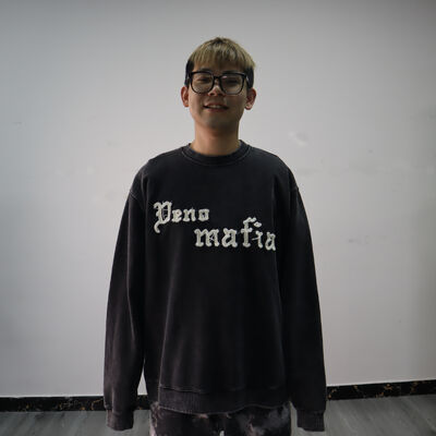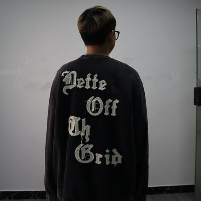 Moletom Bordado com Apliques Personalizados de Alta Qualidade Lavado Ácido Tamanho Plus 100% Algodão Camiseta Casual de Manga Longa para Homem