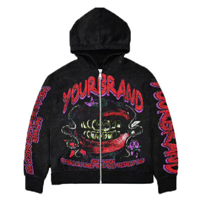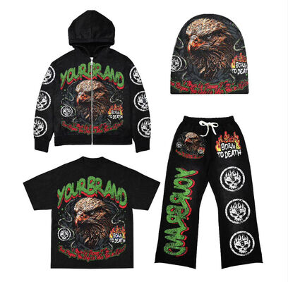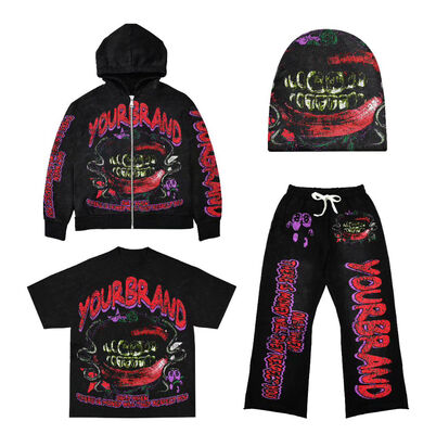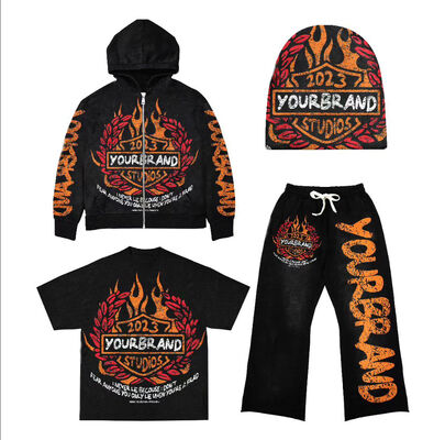 Odm Training Wear Custom Plus Size Men'S Printed Suit Jogger Zipper Hoodie And Flare Stacked Sweat Pants Set Men Manufacturer