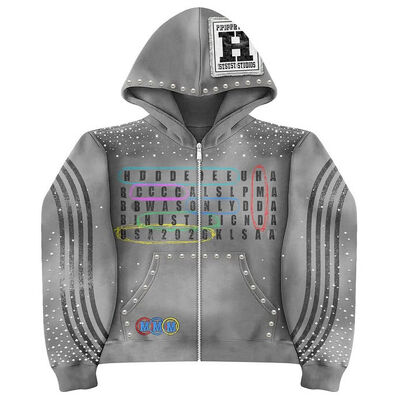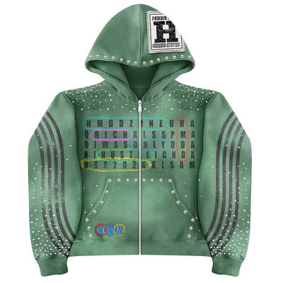 Heavyweight Pearl studded Rhinestone Graphic Print Acid Wash Sweatshirt Custom Zipup Vintage Stripe Oversized Boxy Hoodie Unisex
