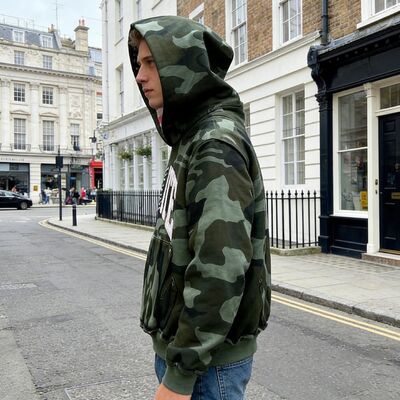 Custom 100% Cotton Unisex Oversize Hoodies Retro Street-Style Camo Camouflage Heavyweight Boxy Rhinestone Embroidery Patch Logo 1