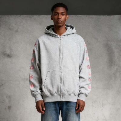 Custom High Quality Zip up Streetwear Heavyweight Tiktok Sweaetshirts 100% Pure Cotton Thermal Oversized Printed Men's Hoodie