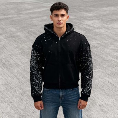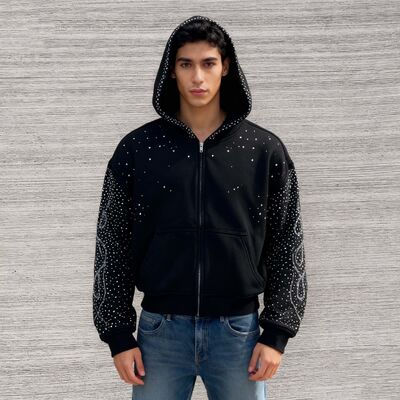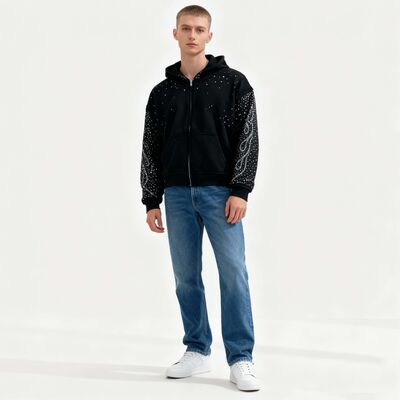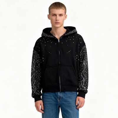 Custom Top High Quality Streetwear Rhinestone Embellished Zip up Hip Hop Heavyweight Comfortable Basic Oversized Men's Hoodie