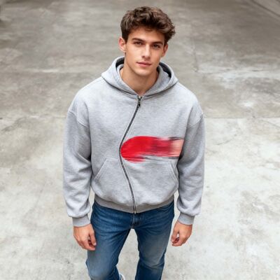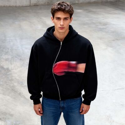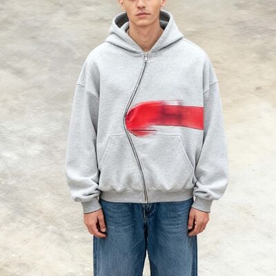 Manufacturer Custom Heavyweight Printed French Terry 100% Cotton Irregular Zipper Graphic Oversized Baggy Boxy Hoodies for Men