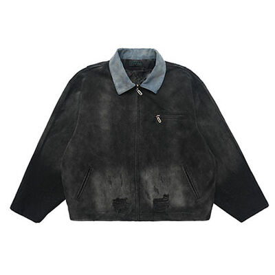 2024 New Custom Logo Old Cut Fashion Spray Bay Jacket Jacket Men'S Vintage Lapel Denim High Quality Heavy Weight Acid Wash Men'S