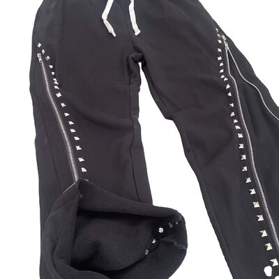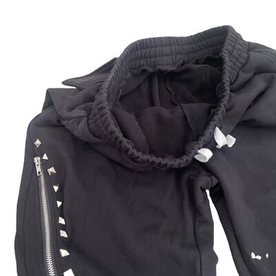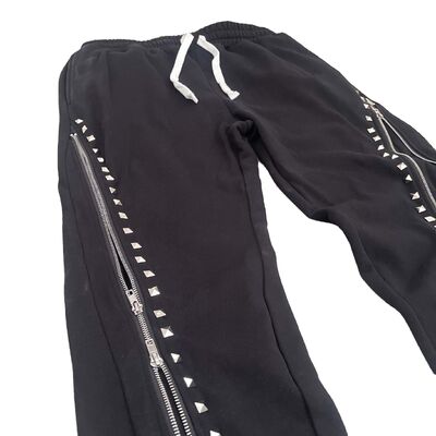 Wholesale Custom Streetwear Long String Black Trousers Baggy Fit Mens Pant 450gsm French Terry Rhinestone Zip Up Flare Pants For