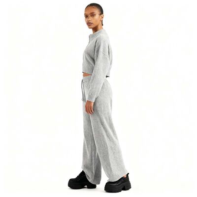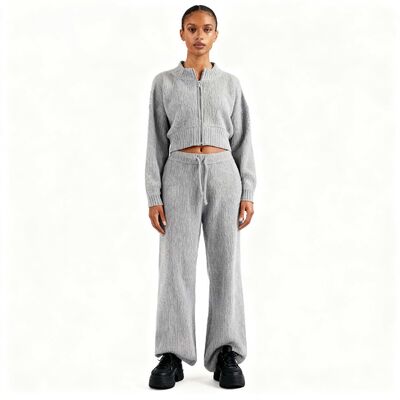 Autumn Winter Knit Sweatsuit Custom logo Outdoor Casual Zip up Jacket and Baggy Pants Two Piece Sets Jogger Tracksuit for Women