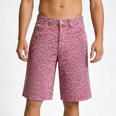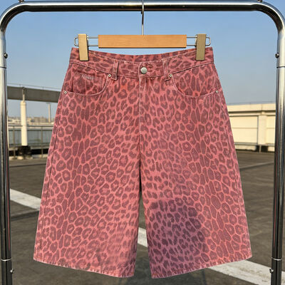 High Quality Streetwear Summer Sequin Leopard Print Overalls Denim Custom Camo Y2k Workout Flared Baggy Jorts Men's Jeans Shorts