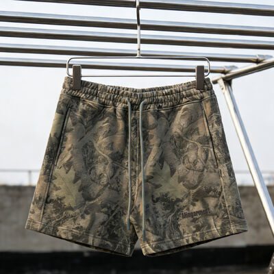 Customized Camouflage Graphic Camo Print Summer Men's Shorts High Quality Streetwear Drawstring 100% Cotton Baggy Fitness Shorts