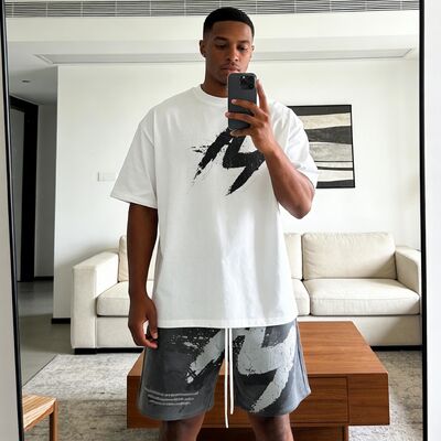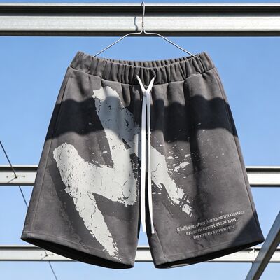 Manufacturer Custom Men's Shorts Vintage Sun Faded Acid Stone Washed Distressed Splash-ink High Street Summer Loose Jogging