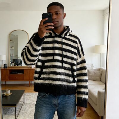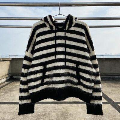 Custom Men Unisex Oversize Fluffy Fuzzy Mohair Pullover Sweater Graphic Stripe Hooded Winter Jumper Luxury Wool Knitwear Top
