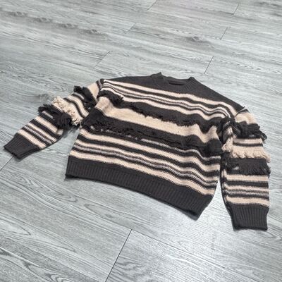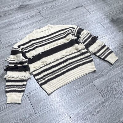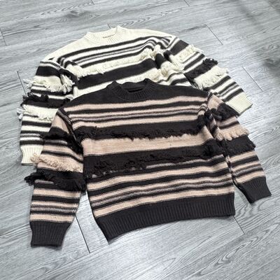Wholesale Brushed Striped Streetwear High Quality Retro Round Neck Autumn and Winter Thick Knitted Plus Size Women'S Sweater