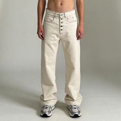 Custom Factory Wholesale Street Trend Men's Button Fly Raw Japanese Denim Pants Straight Leg Loose Baggy Flare Designer Jeans