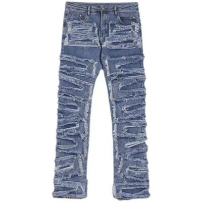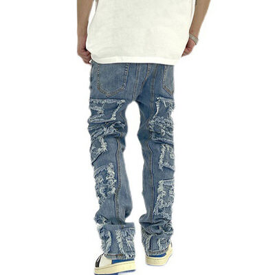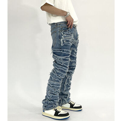 Custom Trending Distressed Acid Wash Fit Straight Stacked Denim Cropped Baggy Pants Streetwear Hip Hop Y2k Jeans Para Hombre