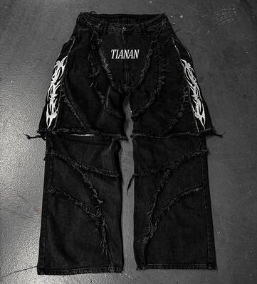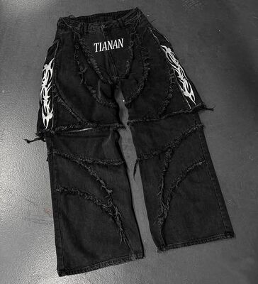Product Name | Manufacturer Custom Logo Designer Oversize Baggy Sweatpants Two Zipper Streetwear Hip Hop Cargo Acid Wash Wide Leg Jeans Pants |