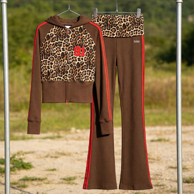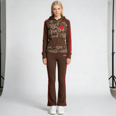 2026 New Trends Y2k Streetwear Heavyweight Women's Tracskuit Custom Leopard Print Side Stripes Zip up Hoodie and Sweatpants Sets